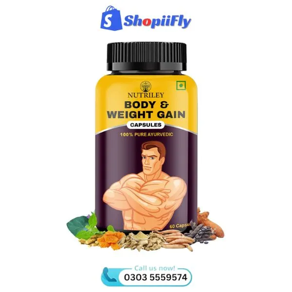 Nutriley Body & Weight Gain Capsule Price In Pakistan. Your body deserves nourishment, the natural boost it with Nutriley Body & Weight Gain Capsules. Achieve a healthier, fuller physique with Nutriley Body & Weight Gain Capsules, a natural supplement thoughtfully crafted to support balanced weight gain and enhanced body strength. Each capsule is enriched with a synergistic blend of Ayurvedic herbs and essential nutrients that help improve appetite, promote better digestion, and support nutrient absorption—so your body gets the most out of every meal.
